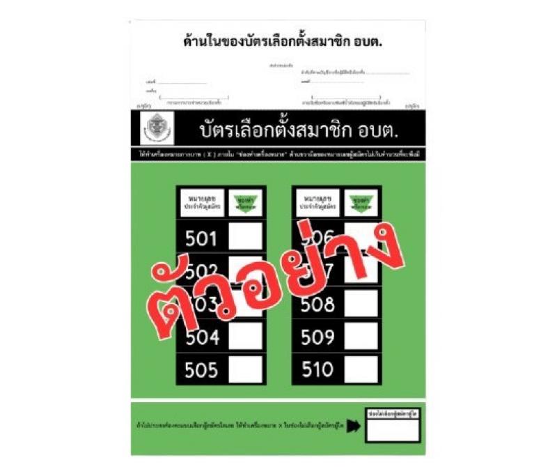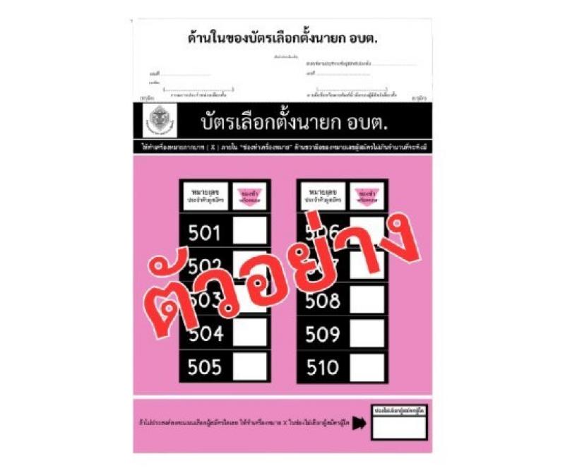 บัตรเลือกตั้งที่ใช้ในการเลือกตั้ง สมาชิกสภาองค์การบริหารส่วนตำบลและนายกองค์การบริหารส่วนตำบล ที่จะมีการเลือกตั้งในวันอาทิตย์ที่ 11 มกราคม 2569
