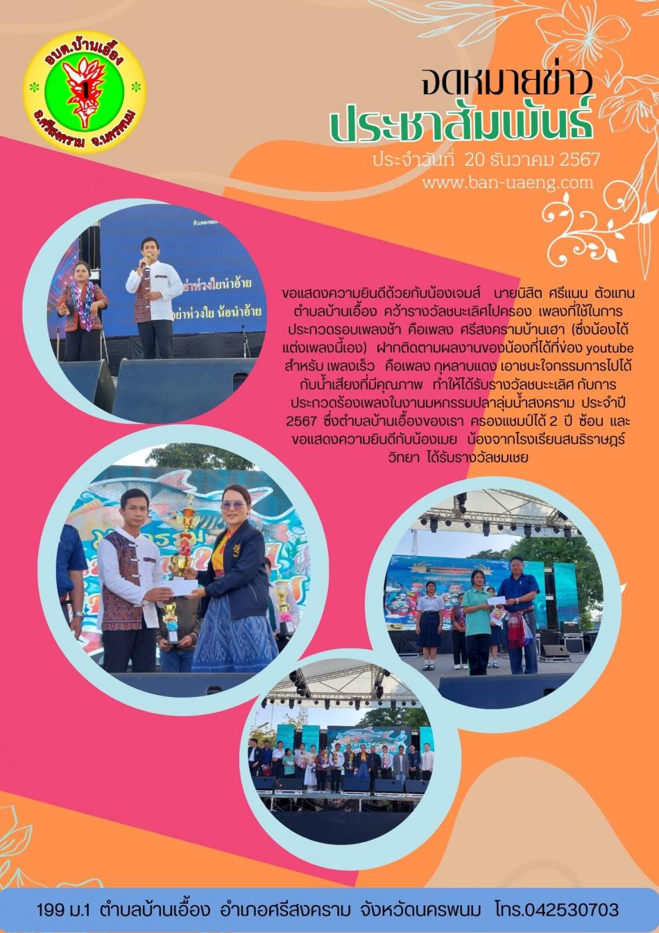 จดหมายข่าวประชาสัมพันธ์วันที่ 20 ธันวาคม 2567 [20 ธันวาคม 2567]