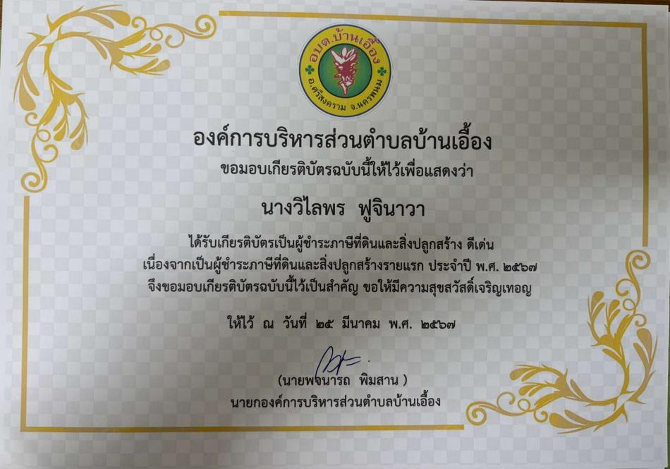 มอบเกียรติบัตริผู้ชำระภาษีดีเด่น [25 มีนาคม 2567]