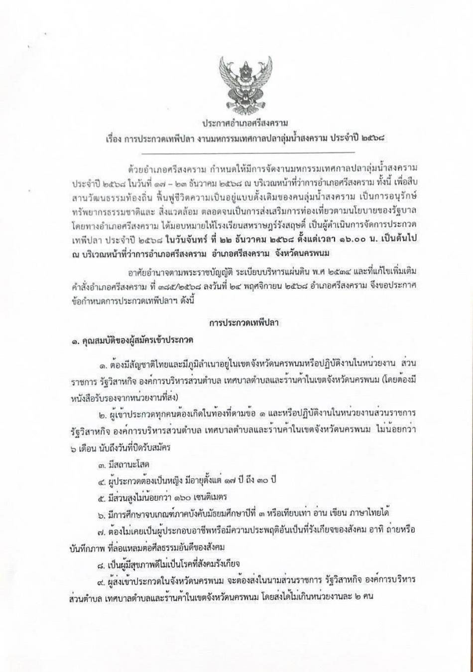 ประชาสัมพันธ์ประกวดร้องเพลงไทยลูกทุ่งหมอลำ งานปลา 68 [11 ธันวาคม 2568]